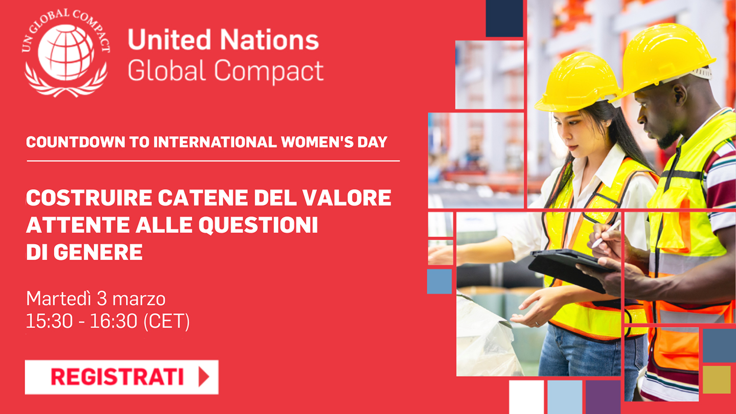 Nel quadro della campagna internazionale “Countdown to International Women’s Day” di UN Global Compact, saranno a disposizione del pubblico interessato al tema della Gender Equality 4 webinar con traduzione simultanea in italiano.